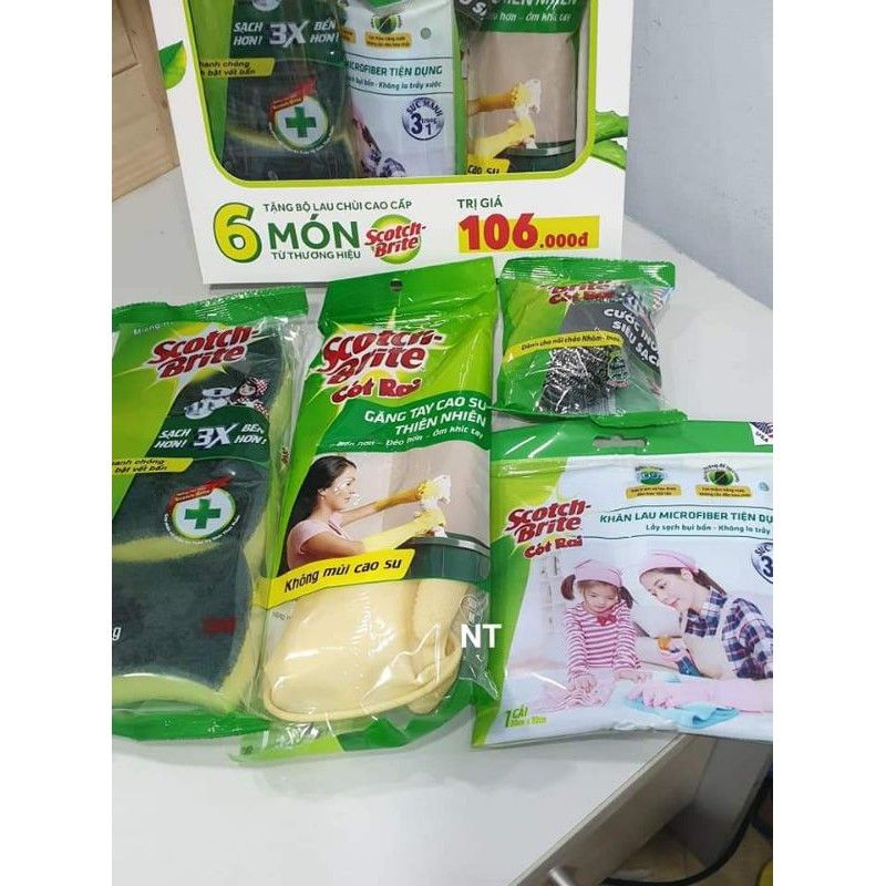 ????????BỘ 5 MÓN LAU VỆ SINH NHÀ BẾP - HÀNG KM SUNLIGHT????????Gồm: ????2 miếng mút rửa chén bát 2 mặt????1 miếng cước chùi ????1 khăn lau đa năng????1 găng tay lau dọn
