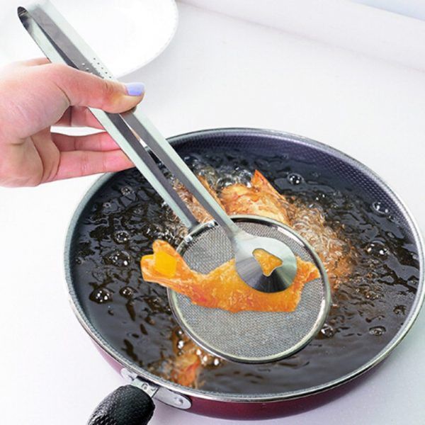 Dụng cụ kẹp gắp đồ chiên có lưới inox lọc dầu