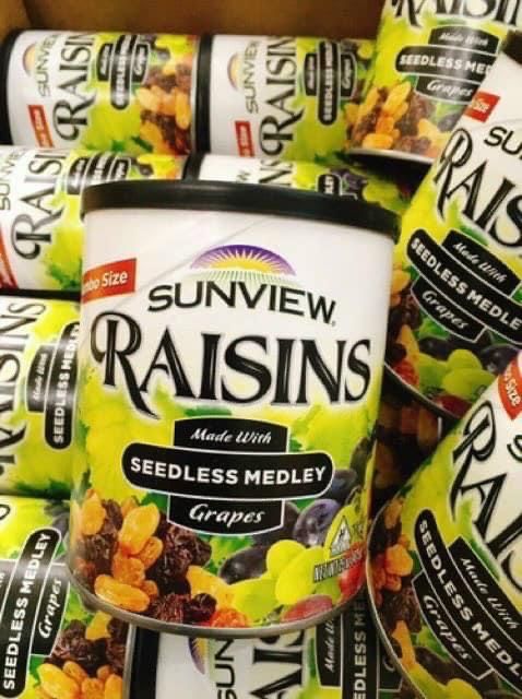Nho Khô Hỗn Hợp Raisins 425g là loại thực phẩm mang lại rất nhiều lợi ích cho sức khỏe. Phần thịt nho khô Sunview chắc, chứa nhiều chất sắt, canxi trong khi phần vỏ lại giàu vitamin A và C. Với hàm lượng vitamin A và chất chống oxy hóa trong nho giúp bảo vệ mắt, chữa các bệnh dị tật mắt như viễn, cận, giảm cholesterol và cân bằng huyết áp tốt. Sản phẩm được chế biến sẵn, đóng hộp tiện dụng, đảm bảo hợp vệ sinh.